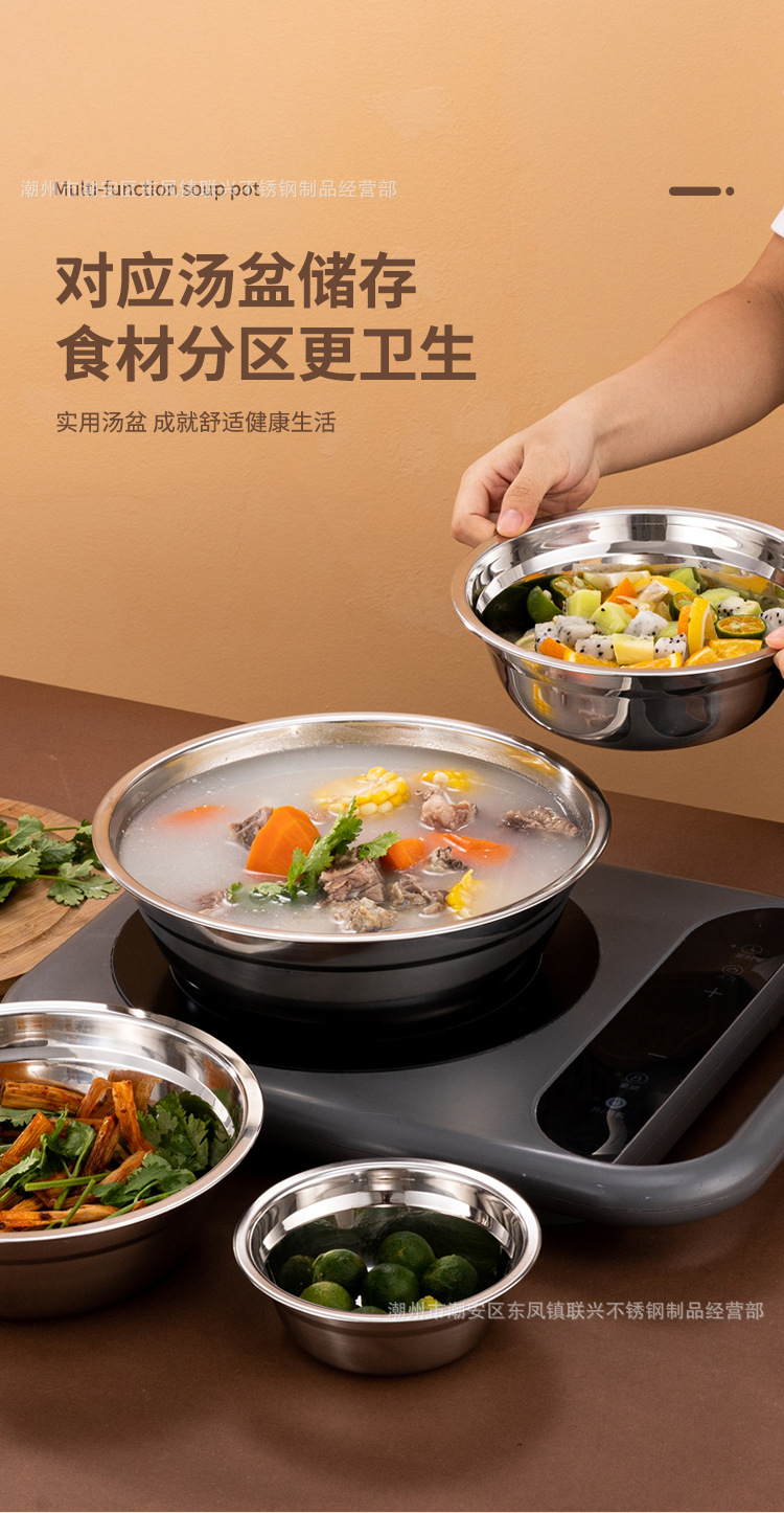 Note: With magnetic is stainless iron material, the pursuit of quality careful patting with magnetic soup basin sold do not accept the return of the basin class size is small 0.5-1CM or so; The following size table is for reference, manual measurement deviation is normal, the actual object shall prevail: