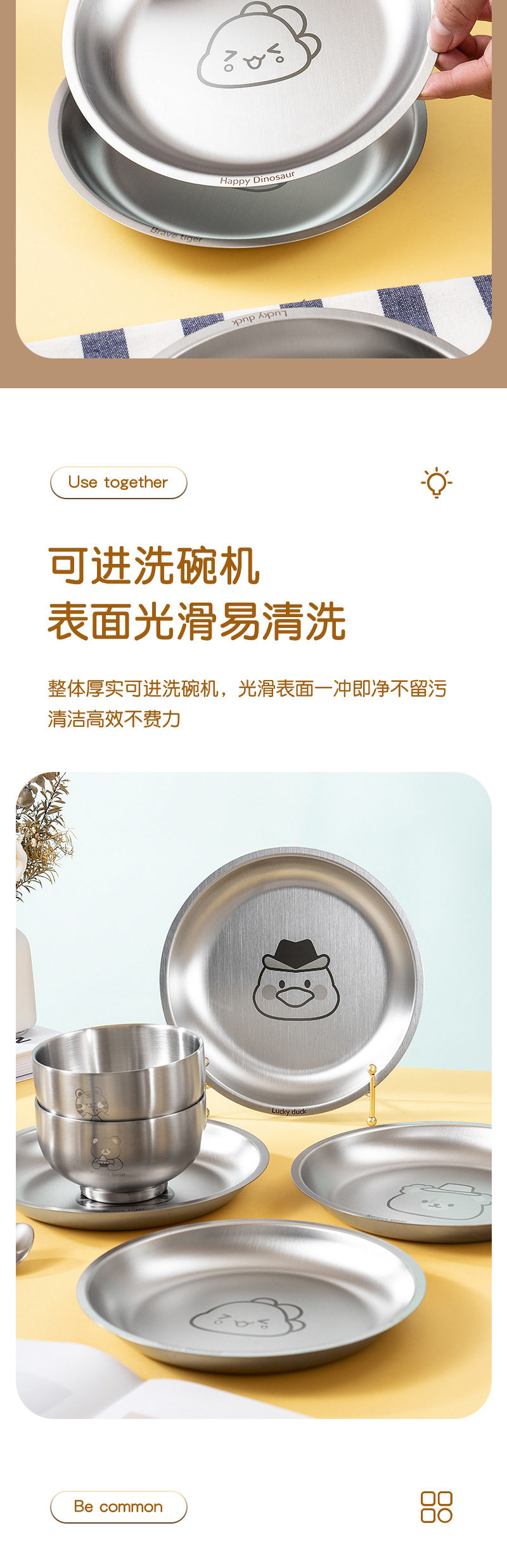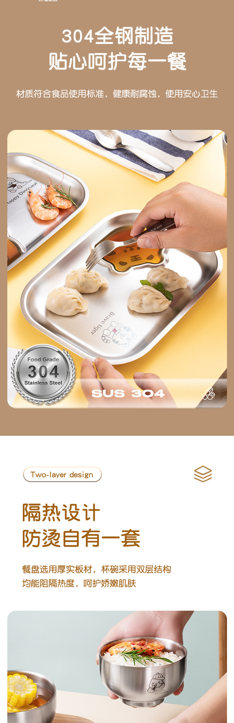 304 Stainless Steel Children's Cartoon Tableware Set Double Bowl Ironing Cup Dinner Plate Fork Spoon Food Tray