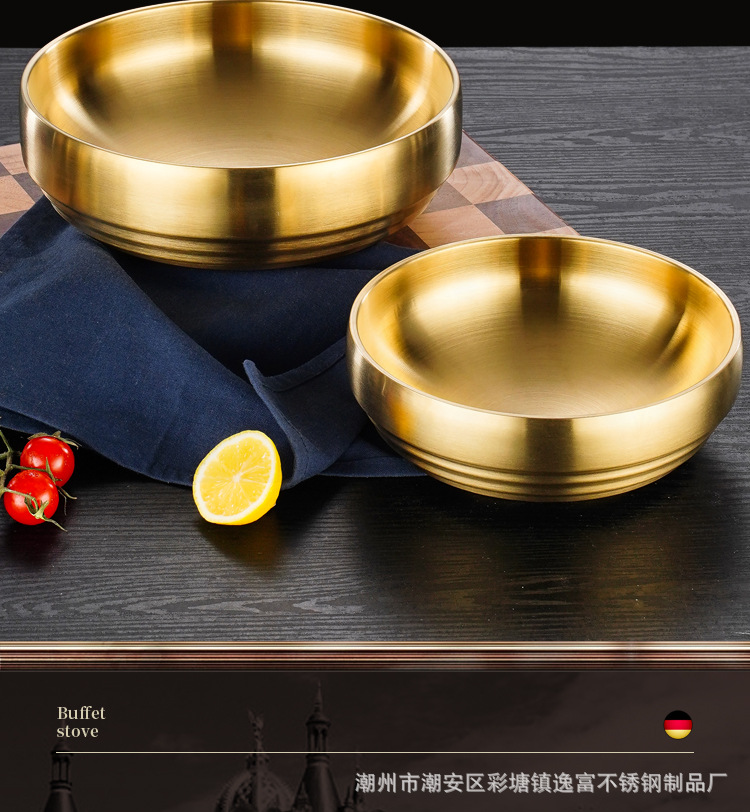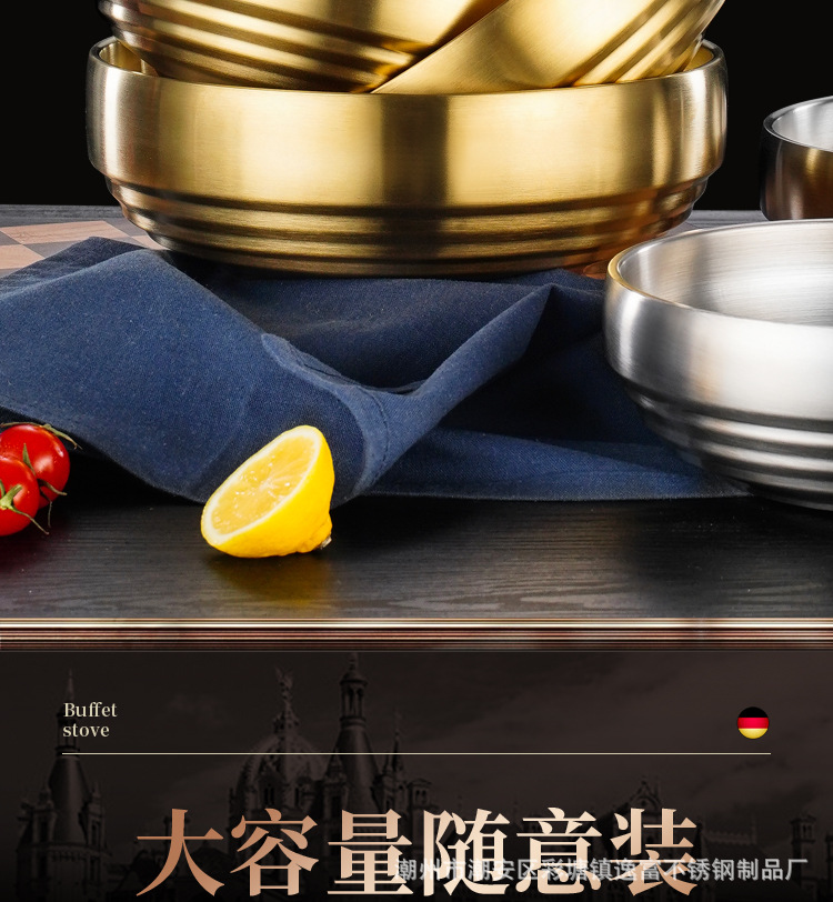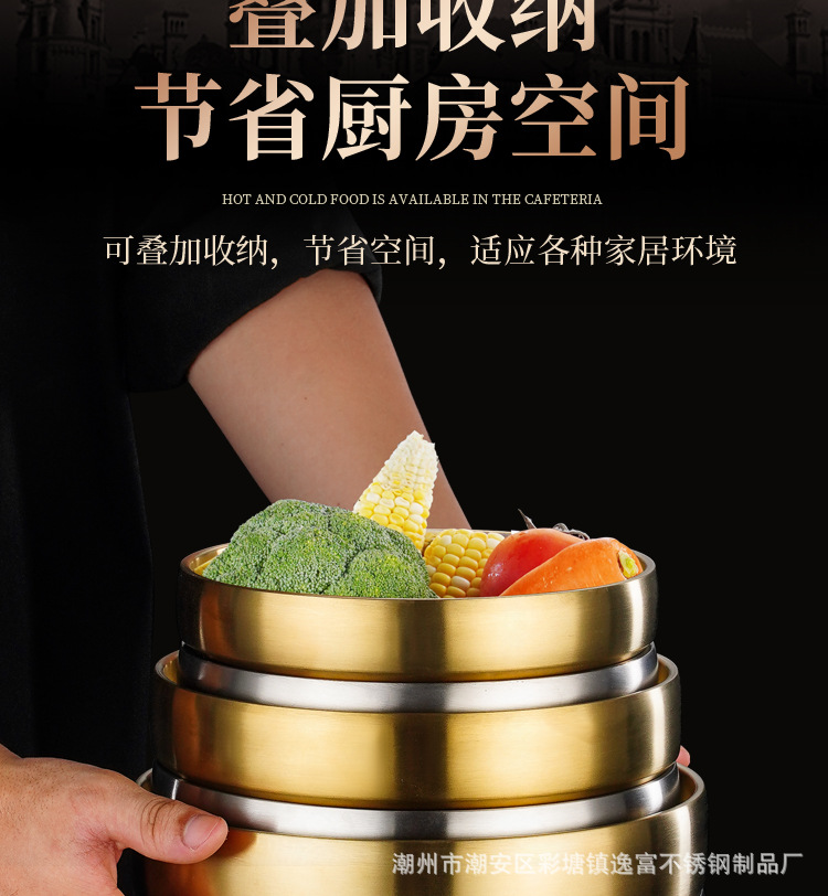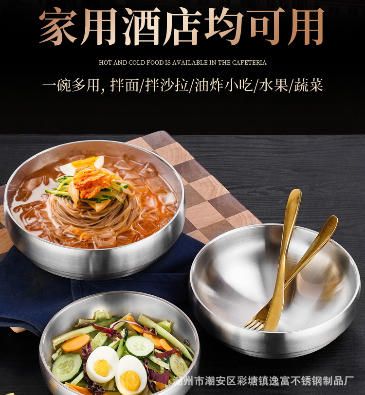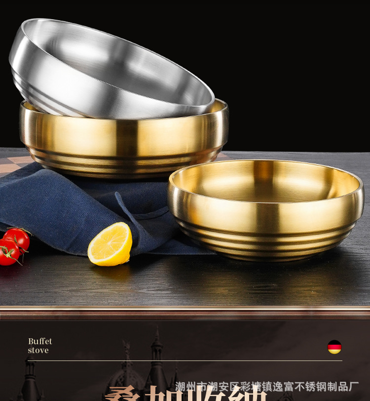 Korean Stainless Steel Cold Noodles Bowl Commercial Double Anti-Ironing Gold Stainless Steel Bowl Household Large Rice Bowl Soup Bowl