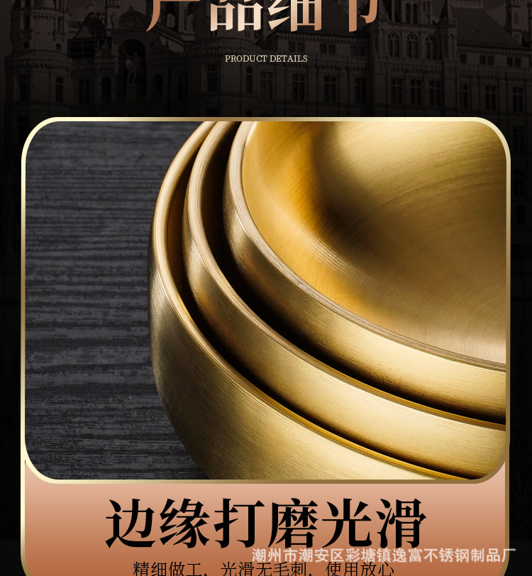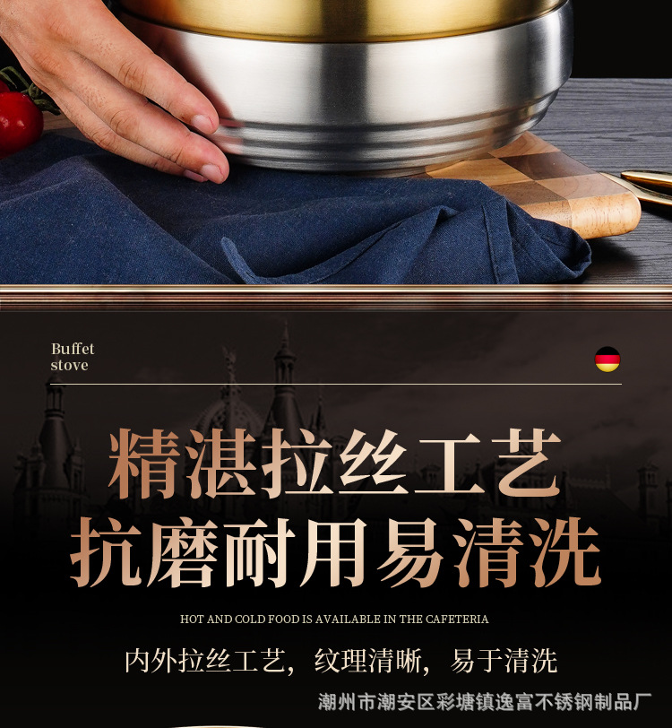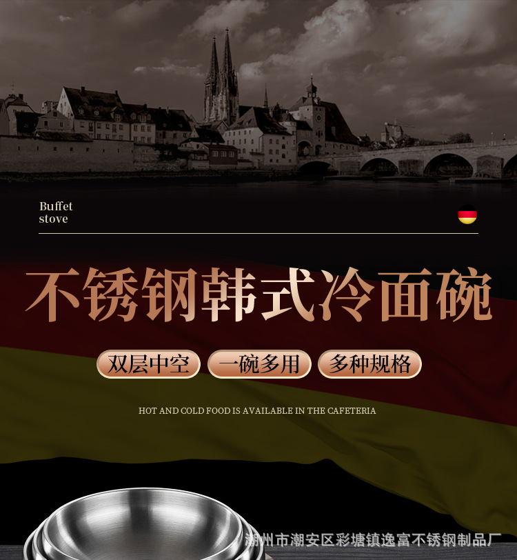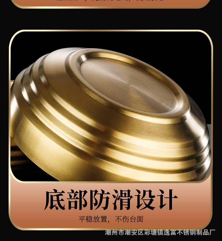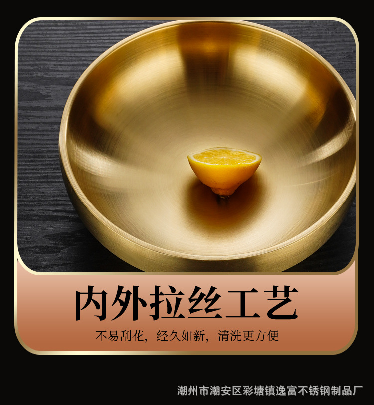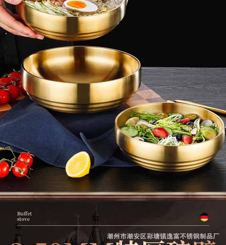Korean Stainless Steel Cold Noodles Bowl Commercial Double Anti-Ironing Gold Stainless Steel Bowl Household Large Rice Bowl Soup Bowl